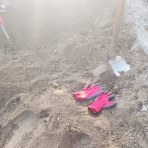 土の中に小石や木の枝などを取る作業や、肥料をまいたり、